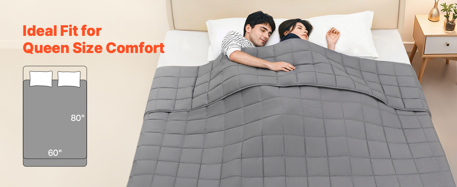 Perfectly Sized for Beds: Measuring 60" x 80" / 88" x 104" , this weighted blanket is designed to fit a queen-size bed, offering cozy coverage for individuals or shared use.